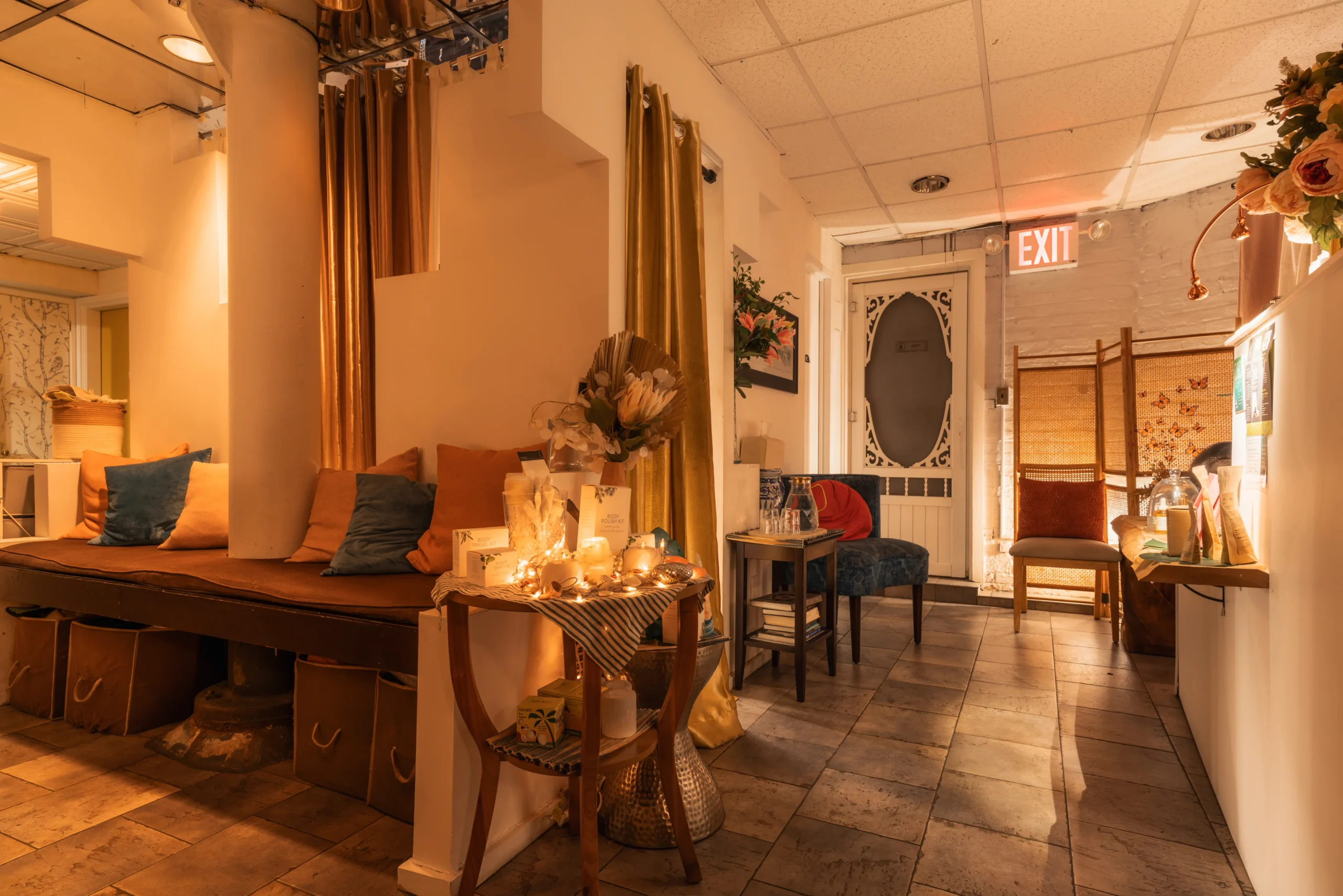 - Table, linens, oils, and music provided